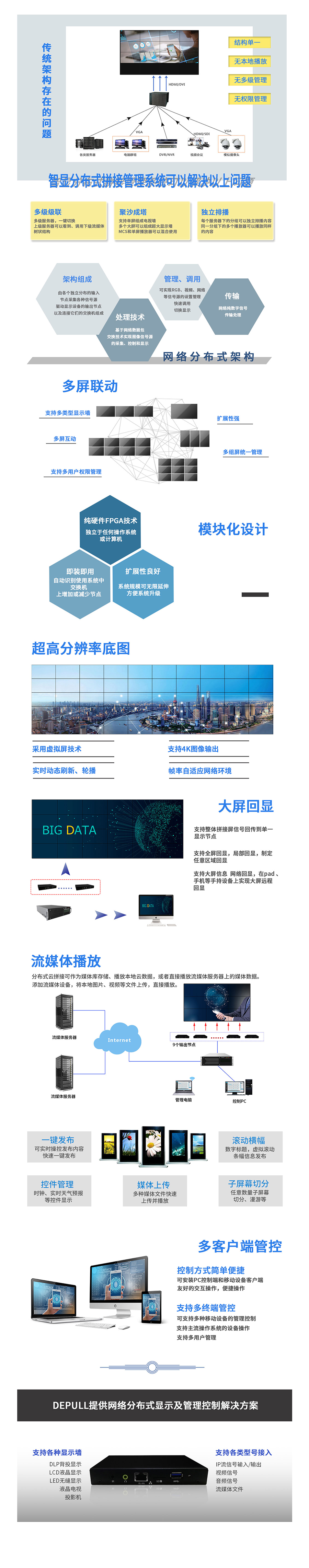 布線精簡,節(jié)約成本,靈活搭配云拼接處理器 避免了傳統(tǒng)線纜長距離的衰減與噪音干擾