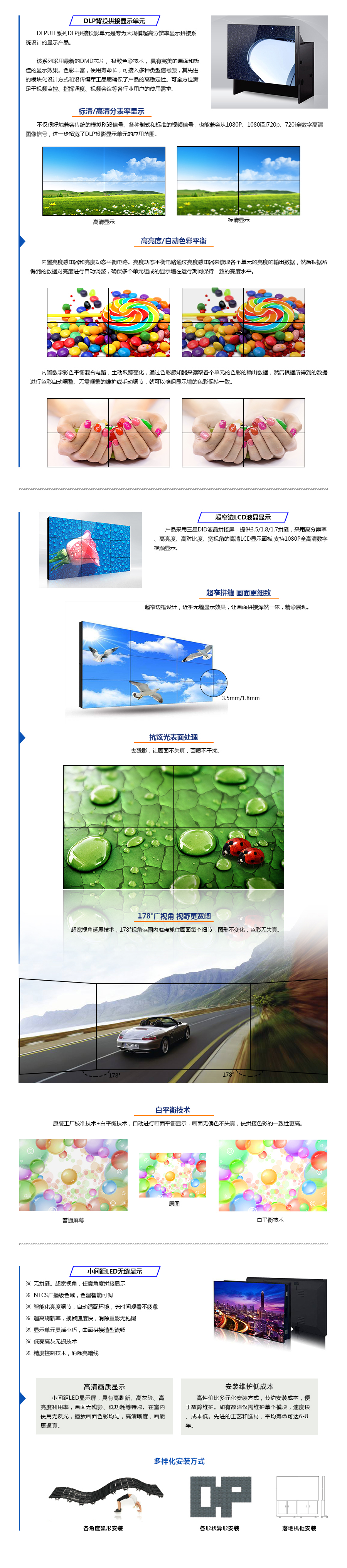 智能化調(diào)節(jié)控制設(shè)計(jì),整體化拼接承重優(yōu)化 多樣化安裝方式,出色的顯示效果,高清畫質(zhì)